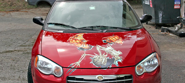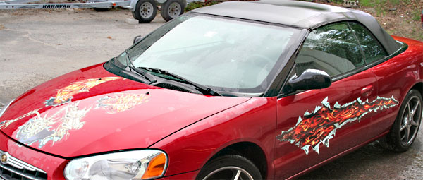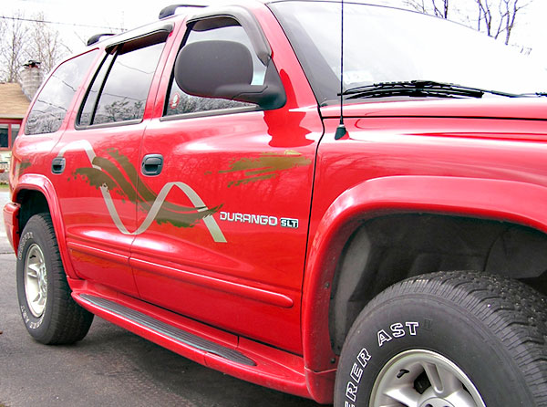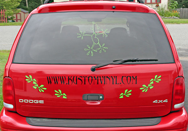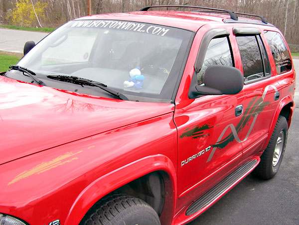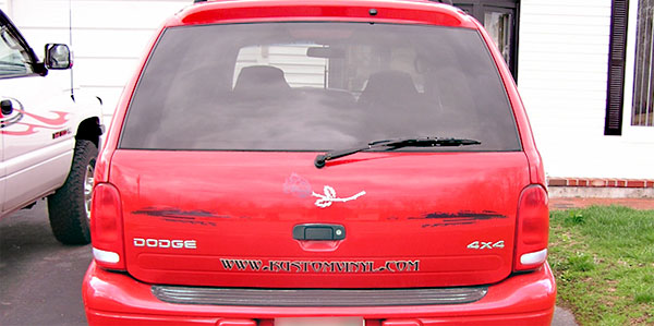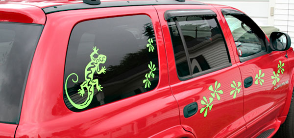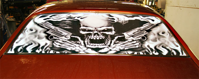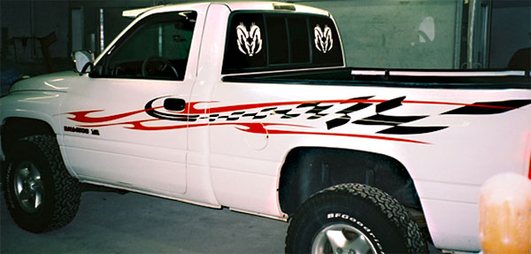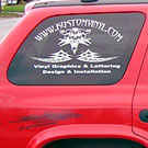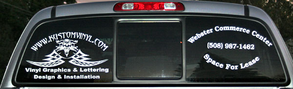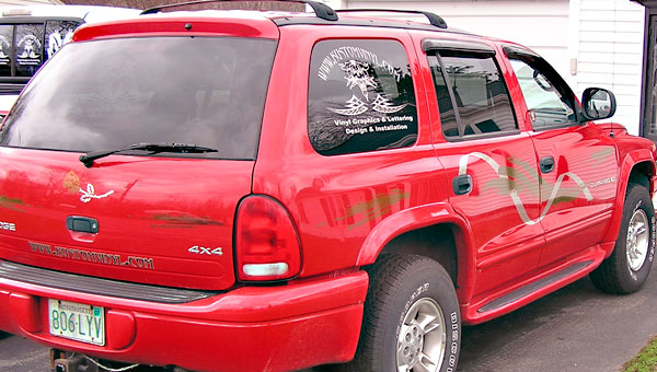 Here are some great examples of simple ways to add character to your windows! If you own a business this is a great economical way to add some extra advertising! We don't just do cars and trucks either! If you have some glass you want to add an image to, contact us today!